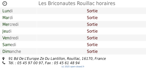 It is also possible to : Modifier ces HEURES D'OUVERTURE of Store Les Briconautes Dans Rouillac, 91 Bd De L’Europe Ze Du Lantillon,